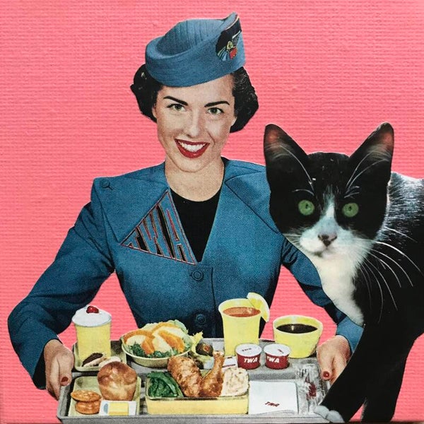 Unieke, handgeknipte en -geplakte collage op schildersbord 10x10x 0,3 cm. Inclusief ophangsysteem.