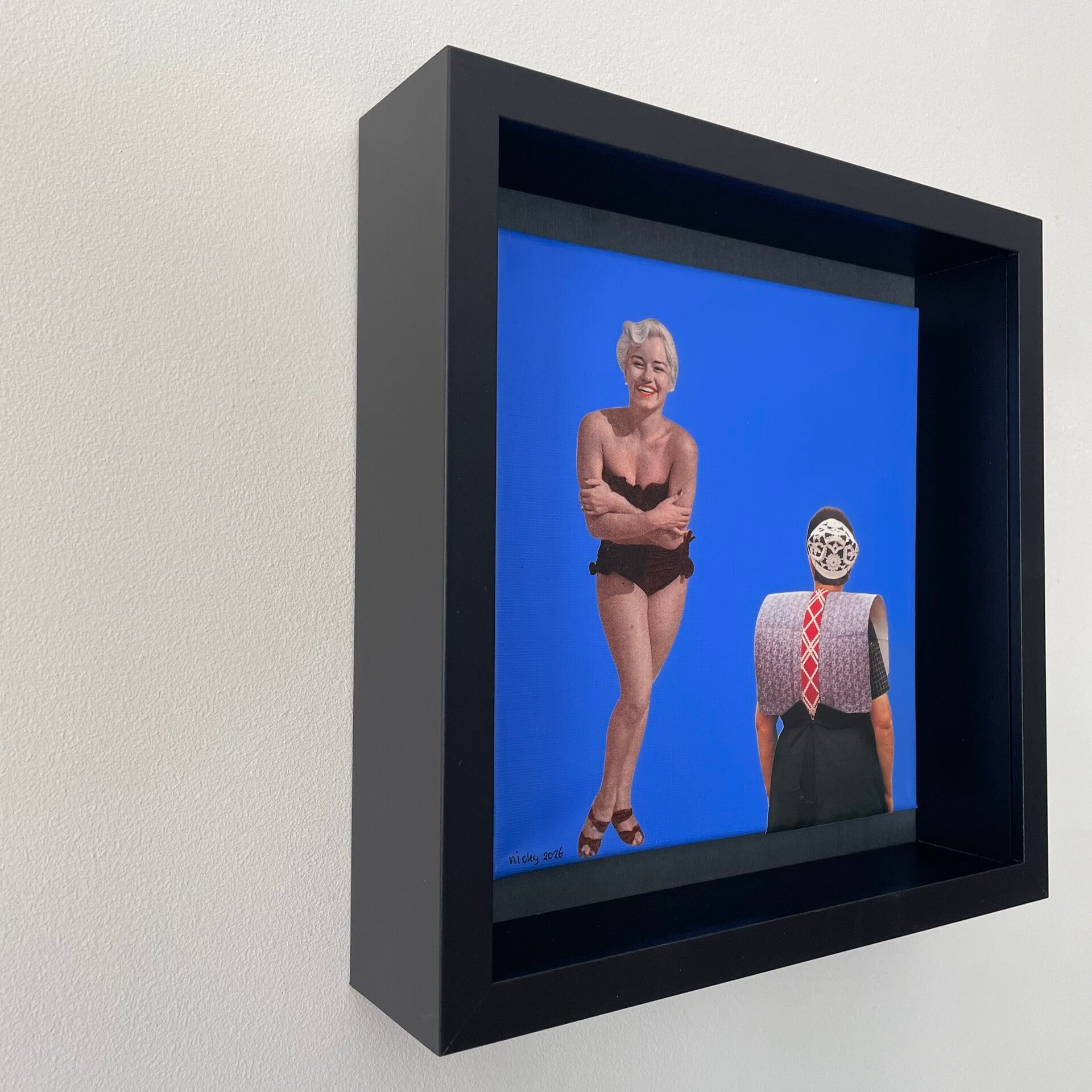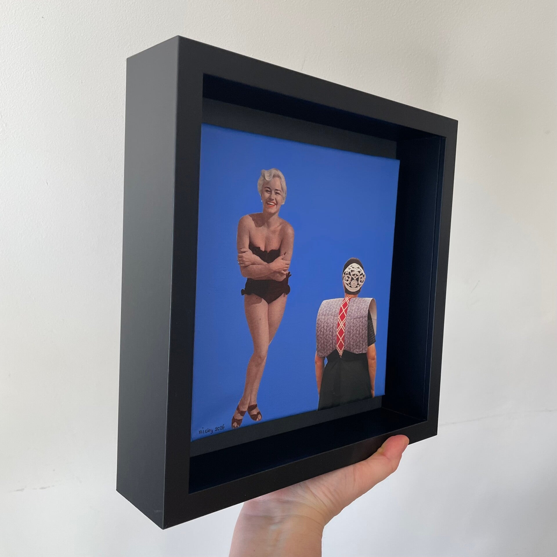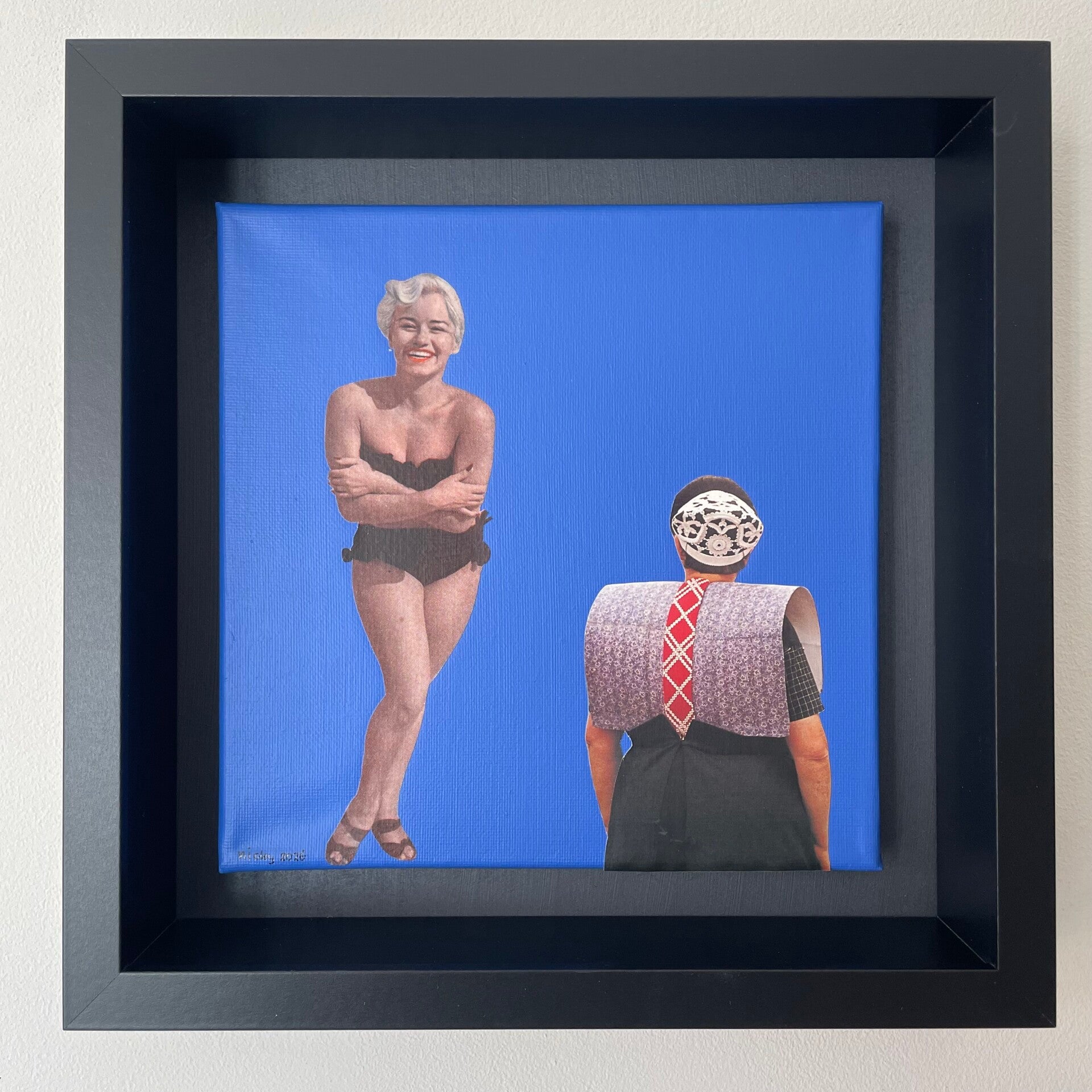 Unieke, handgeknipte collage op schildersdoek 20 X 20 X 1 cm.