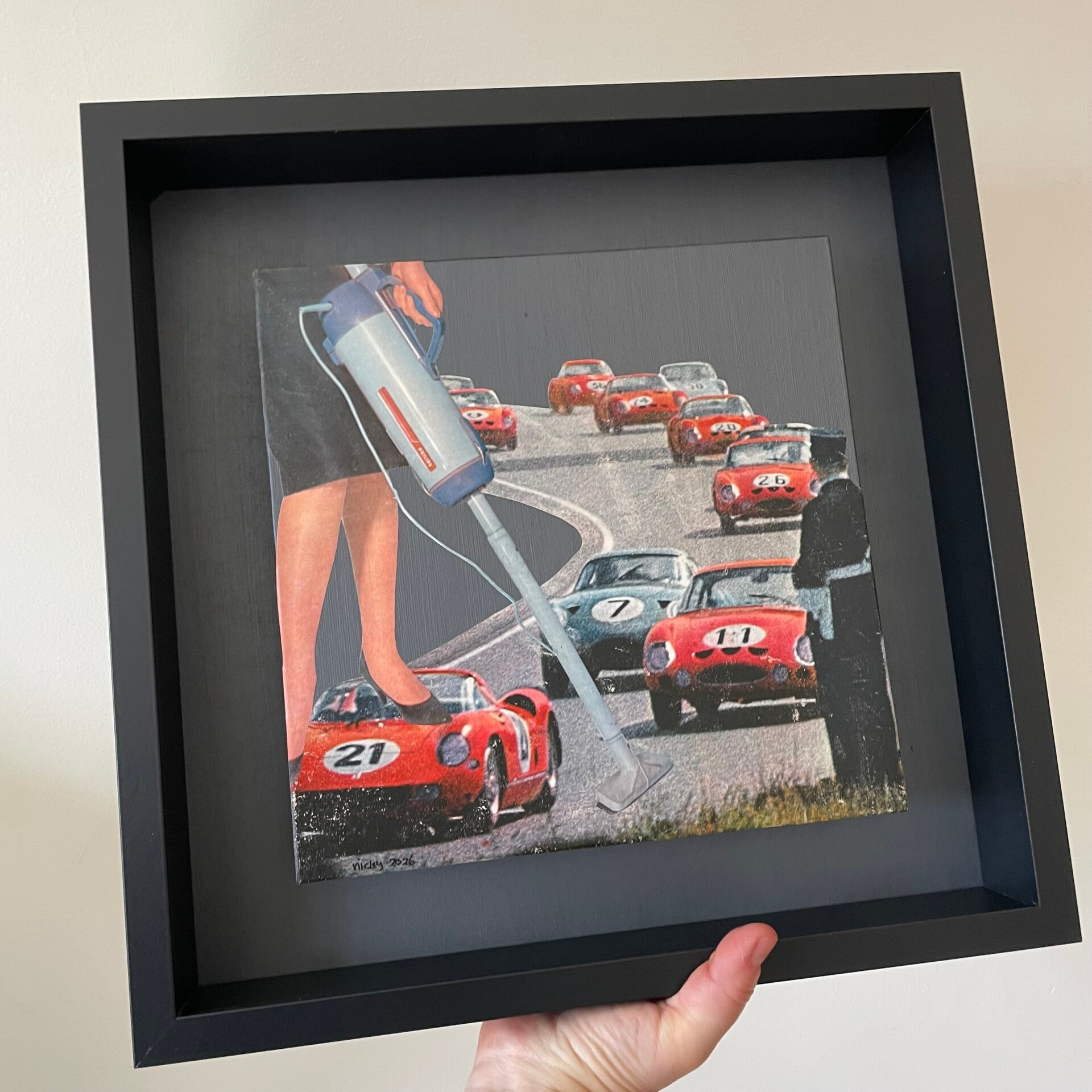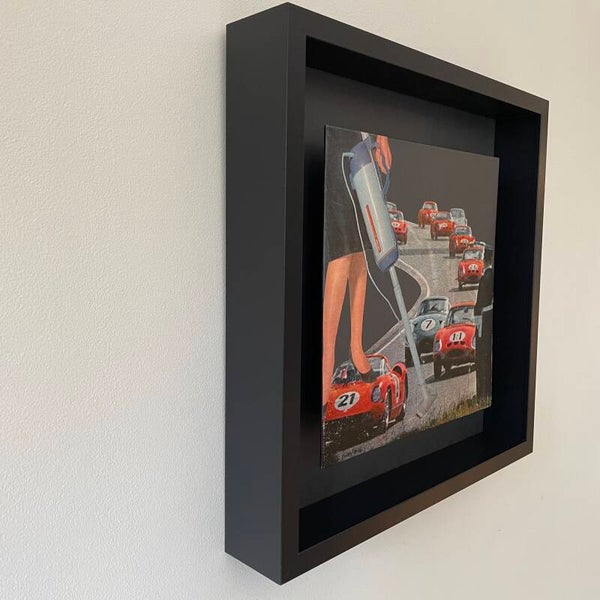 Unieke, handgeknipte collage op schildersbord 25 X 25 x 0,3 cm.