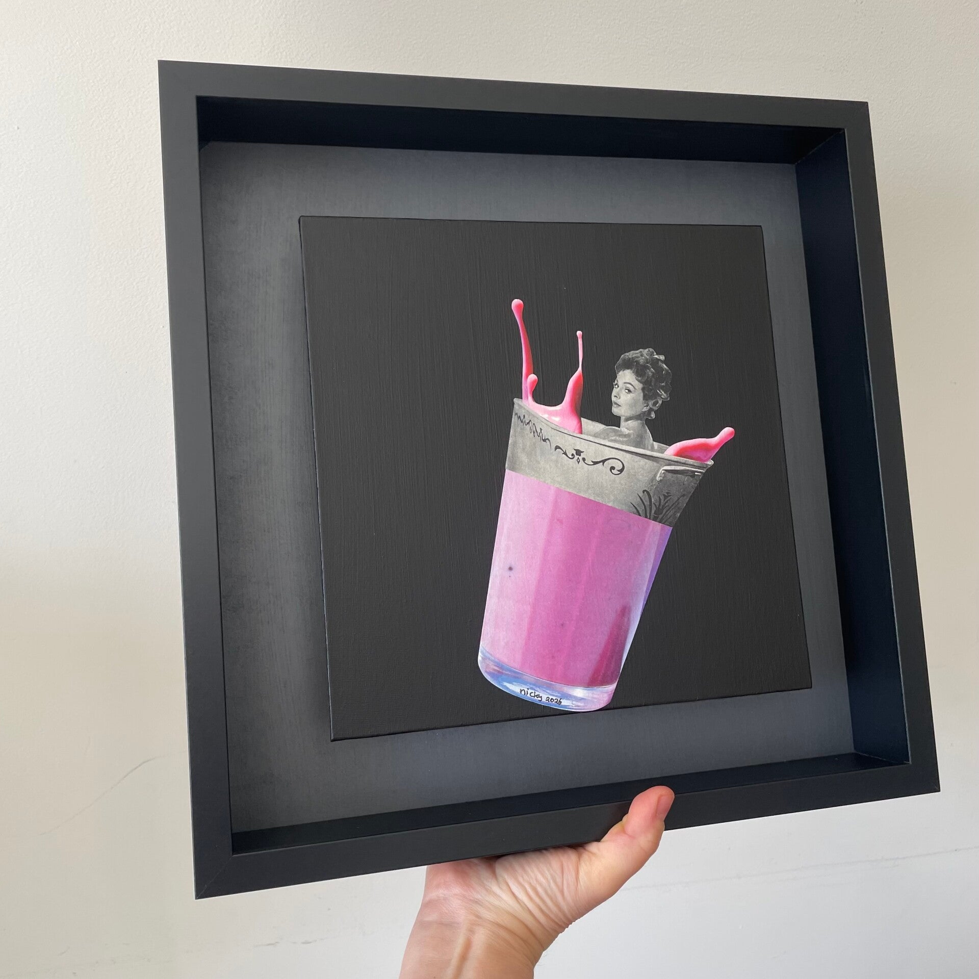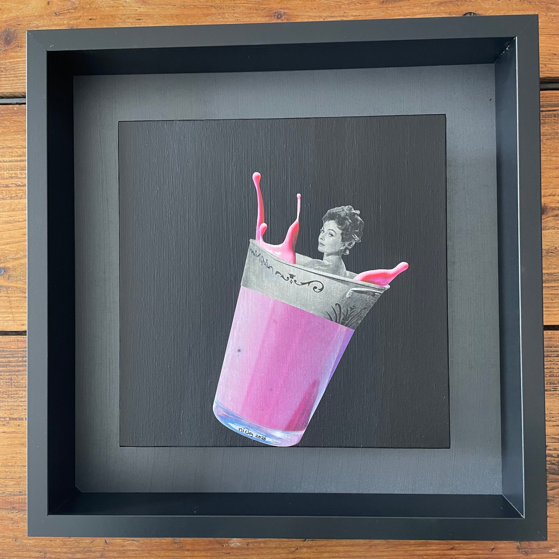 Ik Tjolk graag in bad 25x25x0,3 cm (zw) incl. lijst 35x35x6 cm