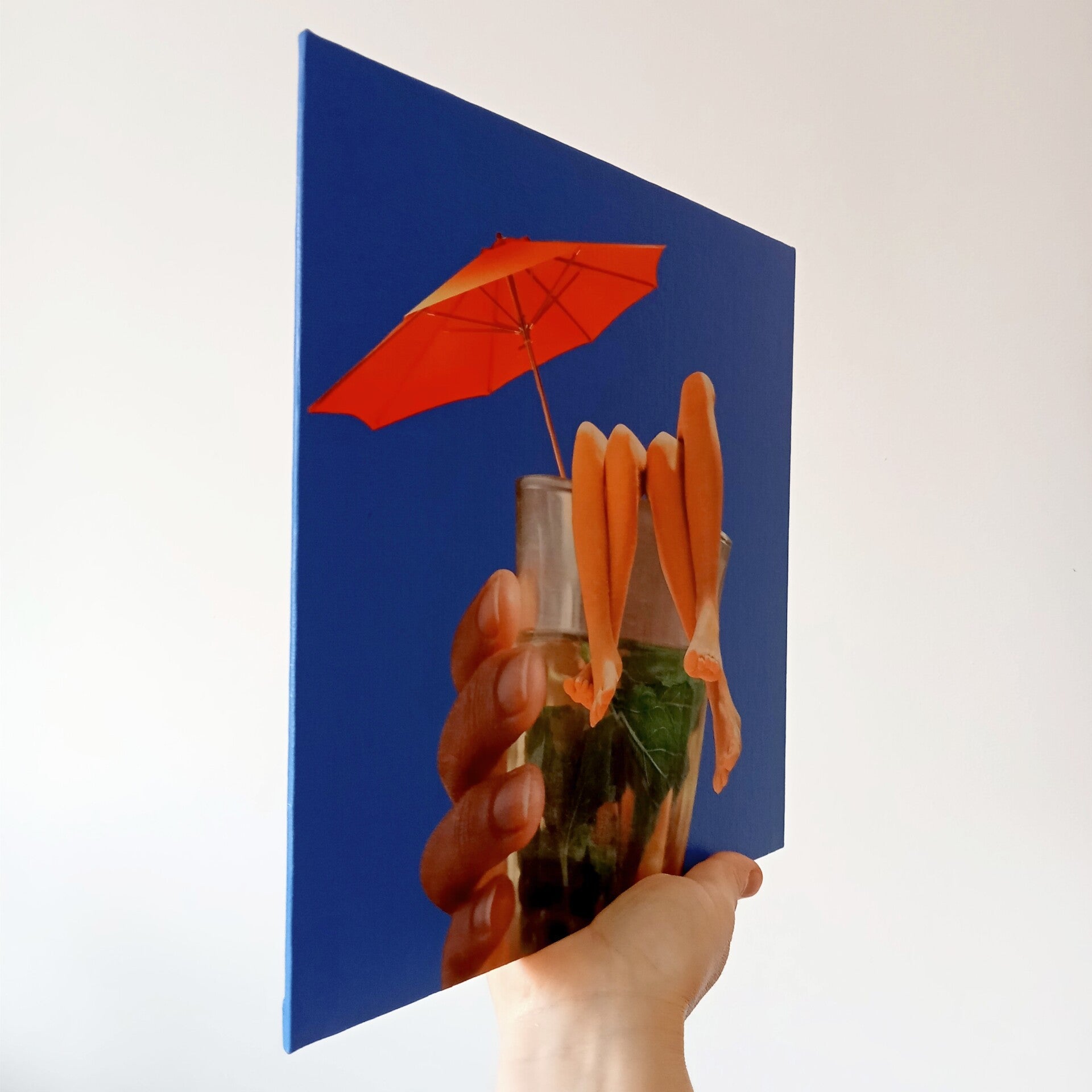handgeknipte en -geplakte collage op schildersdoek 25 X 25 x 0,3 cm.