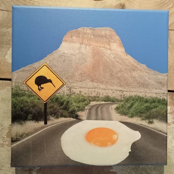 Tenminste, dat dacht dit kiwivogeltje. Er waren toch geen auto’s in aantocht? Makkie! Ze had zich alleen verkeken op de temperatuur van het asfalt. Zodra ze de hitte onder haar pootjes voelde, zette ze het op een lopen. Van schrik verloor ze onderweg een eitje: sunny side up in seconds!