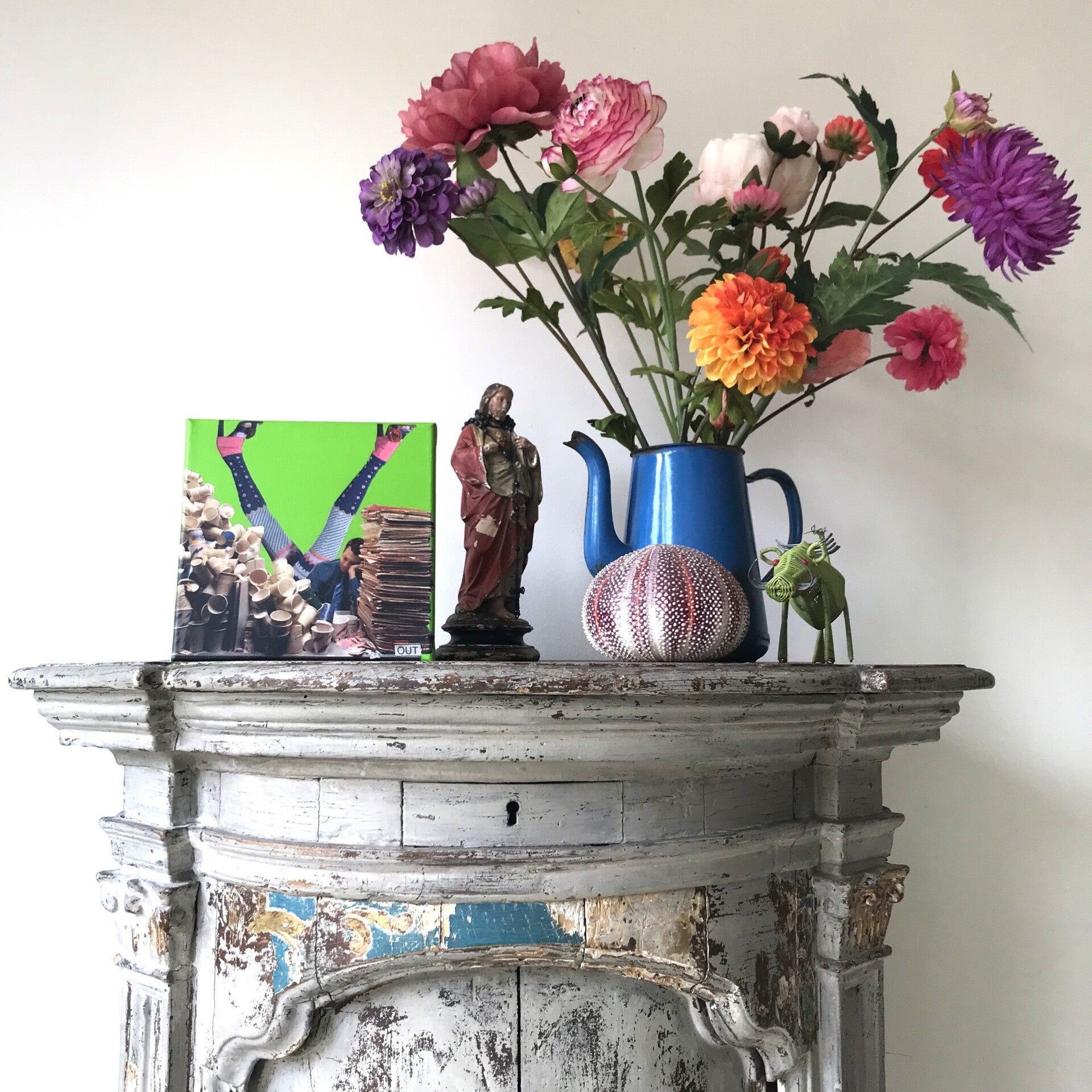Unieke, handgeknipte en -geplakte collage op schildersdoek 20 X 20 x 1 cm.