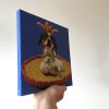 Unieke, handgeknipte en -geplakte collage op schildersdoek 20 X 20 X 1 cm.