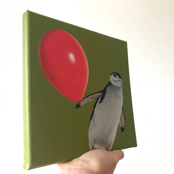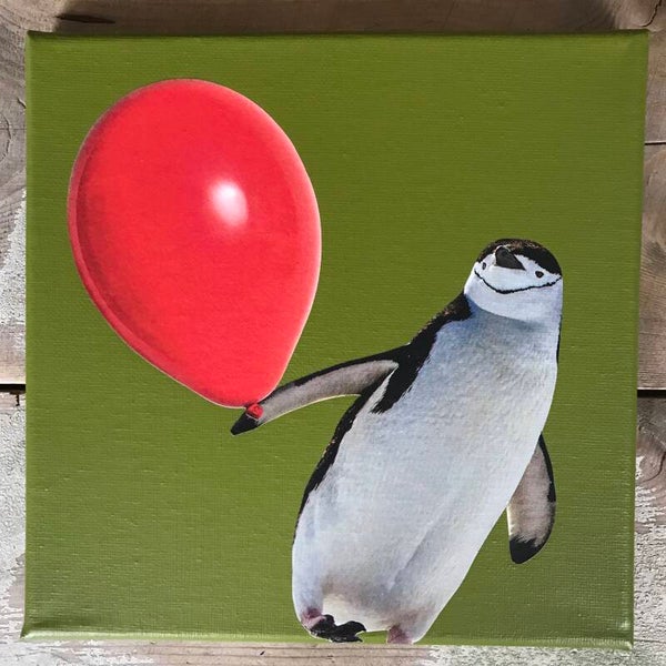 Unieke, handgeknipte en -geplakte collage op schildersdoek 20 X 20 X 1 cm.